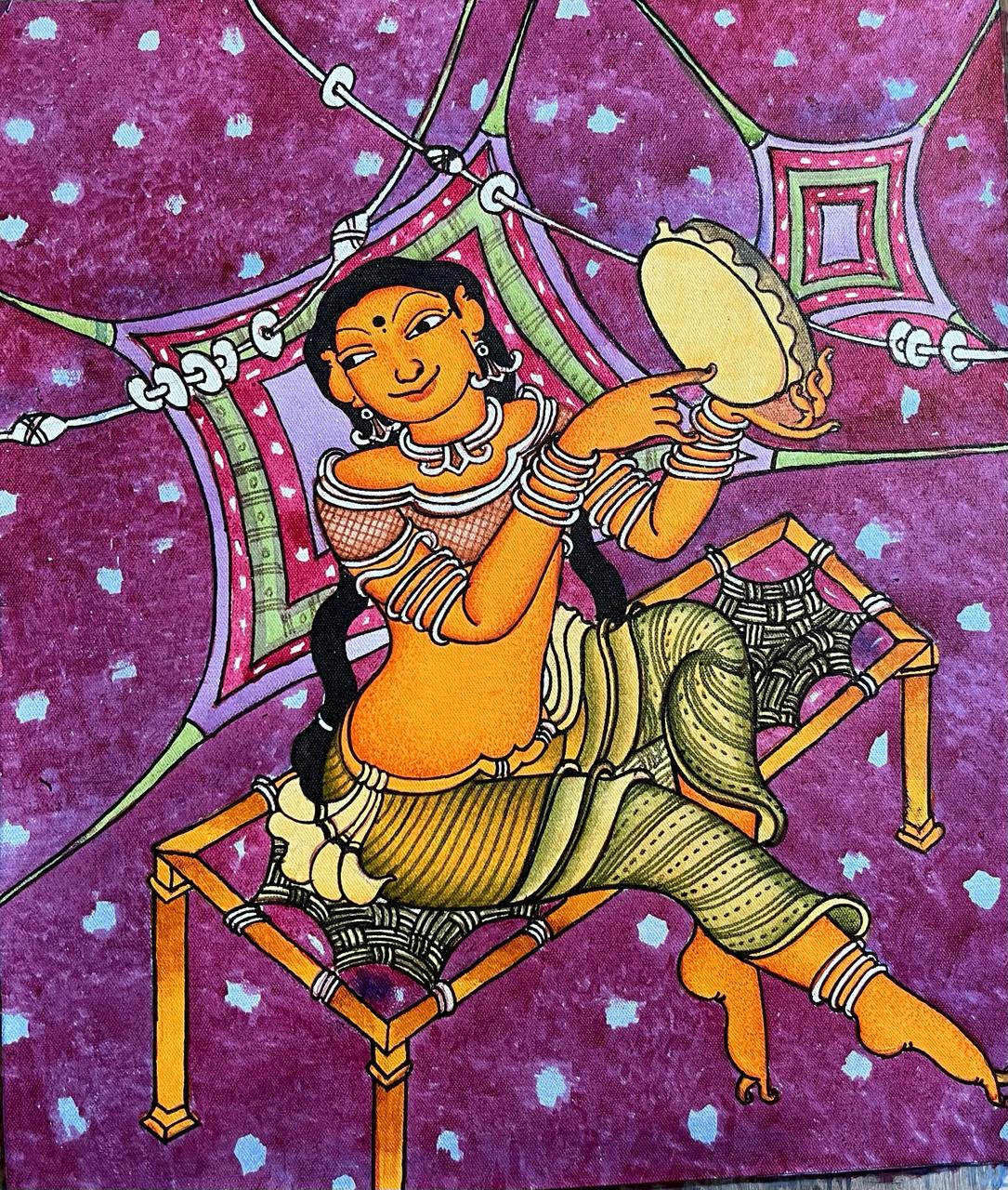 In this workshop we will be making " Playing Dafli by a Tribal lady by Maikandan Punnakkal in Kerala Mural style.